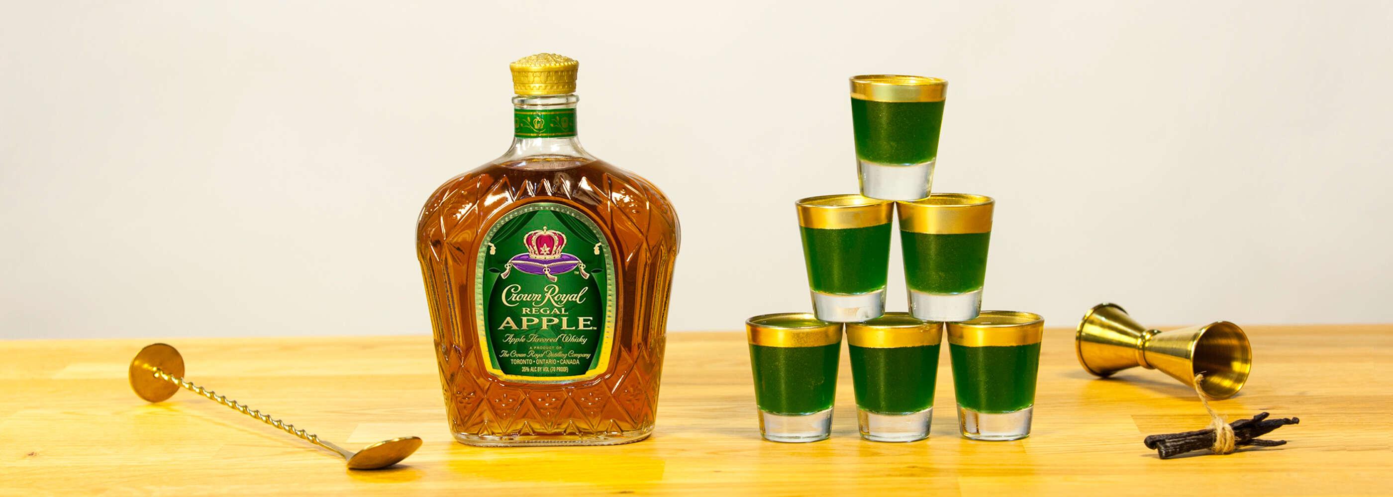 Crown Apple Recipes | Party Cocktails | Crown Royal Instructions. Glassware: Shot Glass. Add Crown Royal Regal Apple to an ice-filled mixing glass. Shake and strain into a shot glass.
