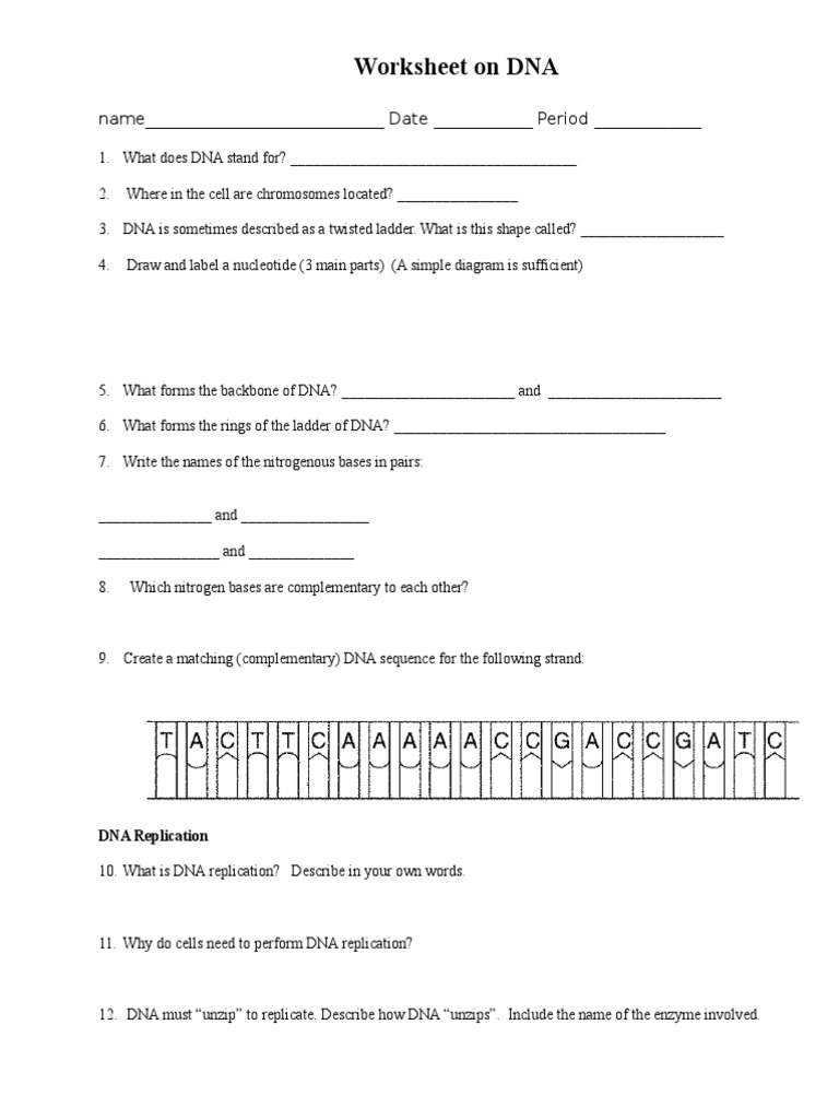 dna labeling worksheet answers Dna And Replication Worksheet Answers Label The Diagram - Juleteagyd ... Dna replication worksheet with answer key worksheets. Dna structure and replication worksheet answers. Dna replication activity biology reading science cut diagram ap lau diagrams student teacherspayteachers activities paste middle teaching 3d mrs. Replication Dna Diagram Label - zid.certificazioni.basilicata.it The first slide shows the basic structure of DNA where students label the nucleotides, deoxyribose, purines, phosphates, deoxyribose, and hydrogen bonds This is the biochemistry questions and answers section on "DNA Structure and Replication" with explanation for various interview, competitive examination and entrance test Unidirectional ...