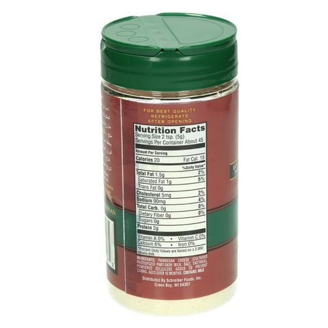 Calories in Parmesan Cheese - FatSecret Calories in Parmesan Cheese The favorite choice for the term "Parmesan Cheese"is 1 tablespoon of Parmesan Cheese (Grated)which has about 22 calories. Calorie and nutritional information for a variety of types and serving sizes of Parmesan Cheese is shown below. View other nutritional values (such as Carbs or Fats) using the filter below: Parmesan Cheese Nutrition Facts • MyFoodDiary® Buitoni Freshly Shredded Parmesan Cheese. 1 tbsp (5g) Nutrition Facts. 20 calories. Log food. Sargento Finely Shredded Parmesan Cheese. 1 ⁄ 4 cup (28g) Nutrition Facts. 110 calories. The Best Parmesan Cheese: A Comprehensive Guide Generally, make sure it's: Imported from Italy. Dotted letter embossed on the rind with name, data, and the seal. Rated "Top Grade". Labeled "Parmigiano Reggiano" not "Parmesan Cheese". Ingredients are just milk, salt, culture, and animal rennet. With the official logos and consortium fire-branded (See images below).
