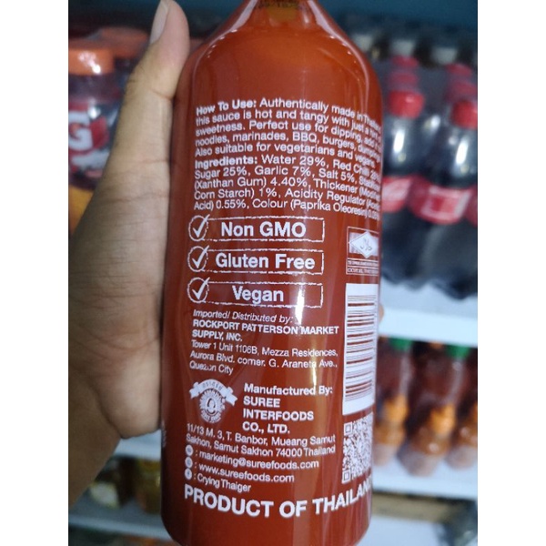 Sriracha sauce ingredients label