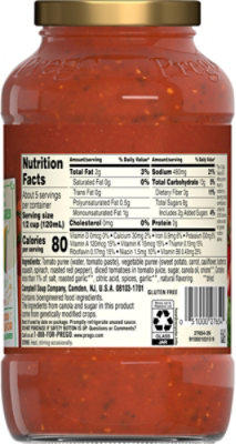 Roasted Garlic Parmesan Italian Sauce - Prego® Pasta Sauces Nutrition Facts: About 5 Servings Per Container: Serving size: 1/2 Cup (120mL) Amount per serving: Calories 70 % Daily Value *; Total Fat: 1g: 1%: Saturated Fat