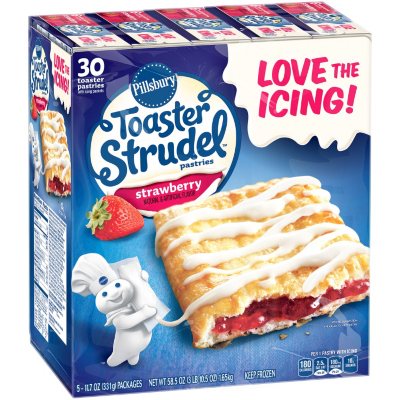 Calories in Pillsbury Strawberry Toaster Strudel, frozen | CalorieKing Where do the calories in Pillsbury Strawberry Toaster Strudel, frozen come from? 34.4% 6.6% 59.0% Total Fat Protein Total Carbohydrate 180 cal. * The % Daily Value (DV) tells you how much a nutrient in a serving of food contributes to a daily diet. 2,000 calories a day is used for general nutrition advice. Your daily values may be higher or ...