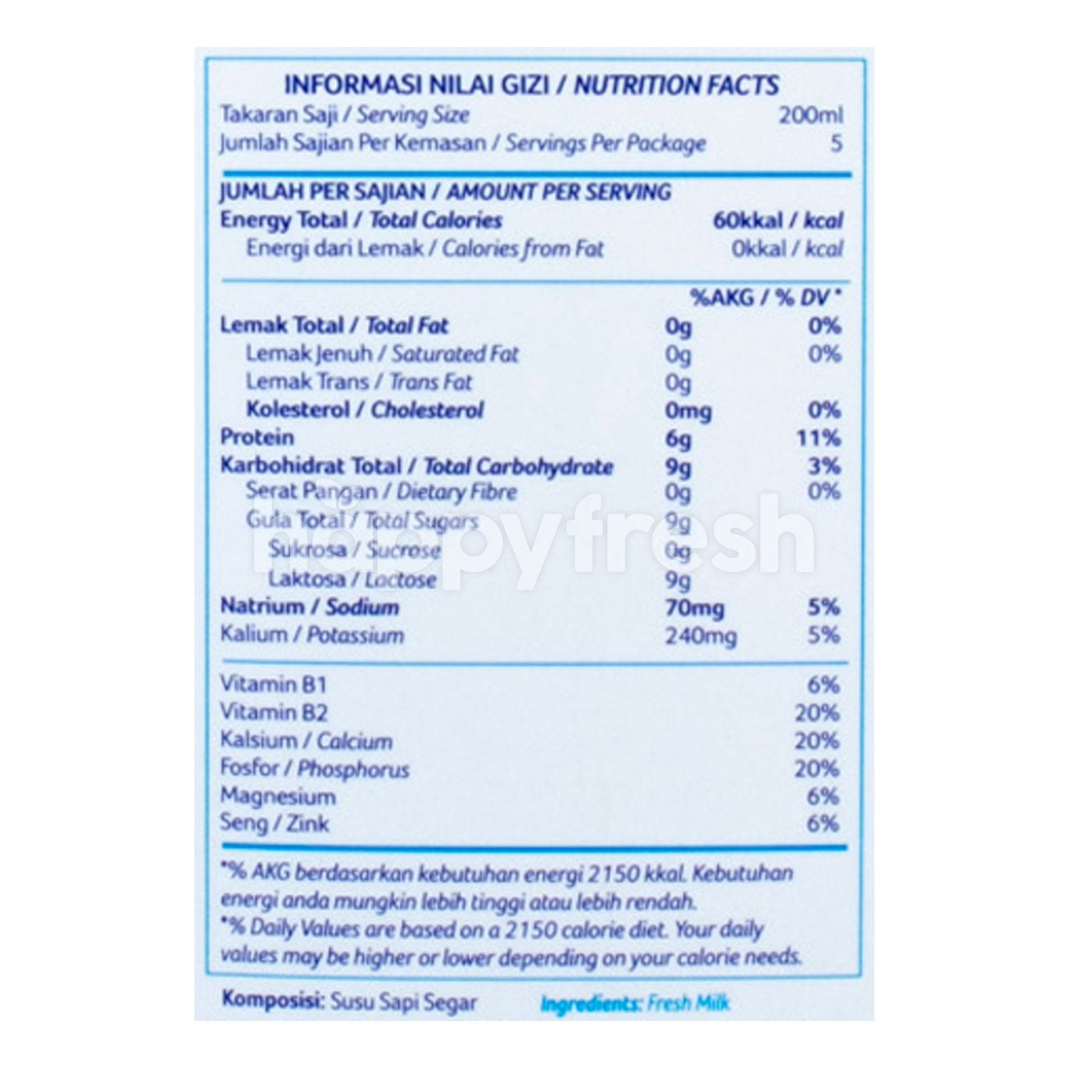 Skim milk food label