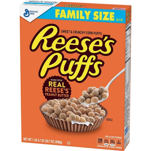 Reese's Puffs | Peanut Butter Cereal | General Mills Cereal Enjoy Reese's Puffs breakfast cereal made with real Reese's peanut butter! Contains PEANUT INGREDIENTS. Enjoy the flavors of peanut butter and chocolate with milk or by itself for a school snack; Made with 11 grams of whole grain per serving (At least 48 grams recommended daily) Cereal kids love with no high fructose corn syrup, no colors ...